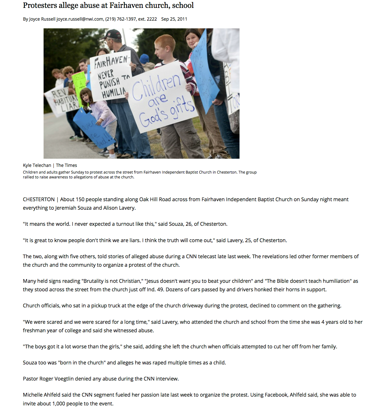 NWI TIMES - Protesters allege abuse at Fairhaven church, school